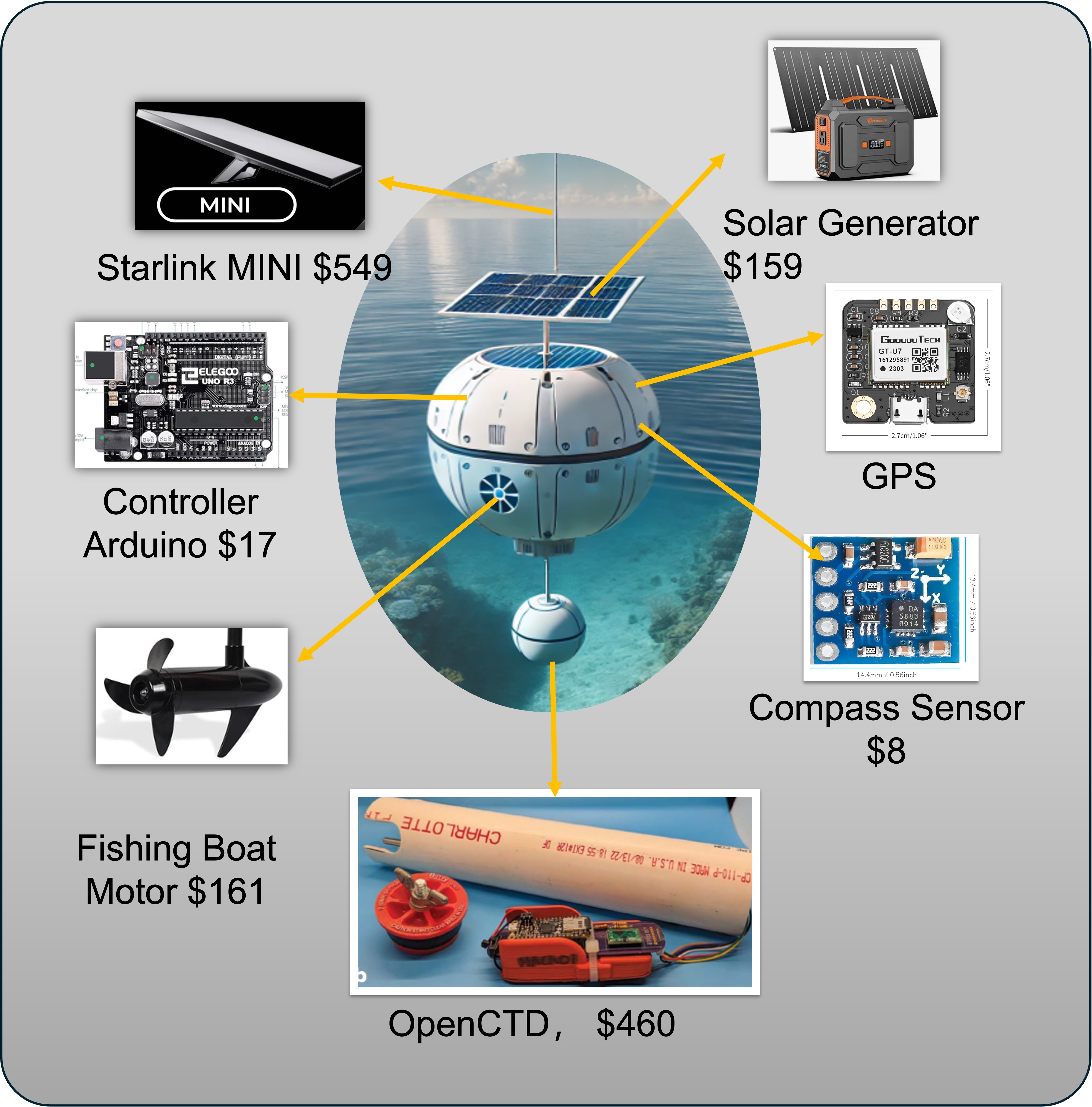 A low-cost, real-time, and self-sustaining Smart Ocean Observing System (SOOS) — designed to track ocean conditions and help solve critical environmental and economic challenges.